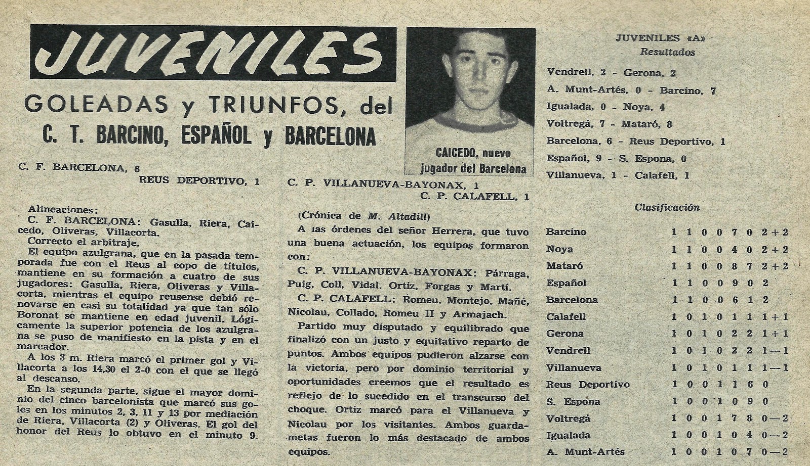 El gol de Nicolau donava un punt en el debut a la pista del Club Patí Vilanova. A l'alineació dels vilanovins hi figura Coll, que va ser jugador del Calafell anys més tard. En la crònica adjunta del Barça-Reus es veu el nom del porter Gasulla, del F.C. Barcelona, que també va defensar la porteria del Calafell un temps després.