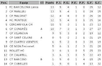 El Barça ja és líder, empatat amb el Manlleu, després de derrotar el Montbui, equip que, fins ara, ocupava el primer lloc. Malgrat i Montbui segueixen en els llocs de Final Four. Cerdanyola i Congrés, amb 10 punts, es situen en una bona posició de la classificació.